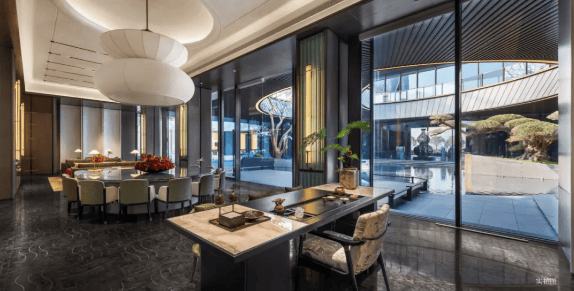 望湖私宴厅、行政酒廊、无边恒温泳池、悦动健身房、雅弈名室、禅意瑜伽室、雅集茶室7大场域,与诗意美学园林相映成趣,礼待东方家族。