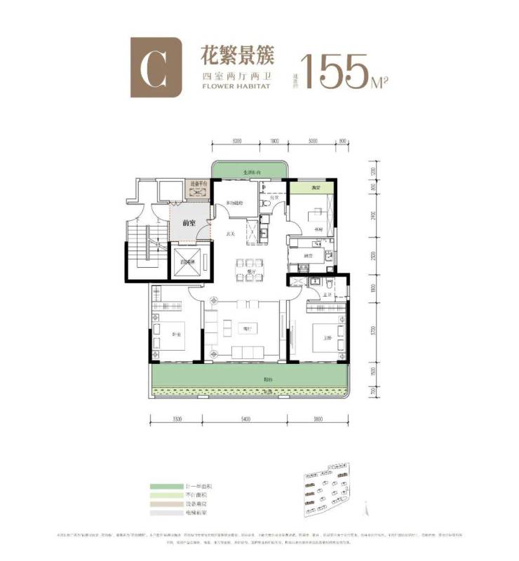 建面约155㎡的户型是花栖樾的主力户型,在经典户型上做了创新,约12.5米南向超大面宽阳台,全幕落地窗,极为通透。