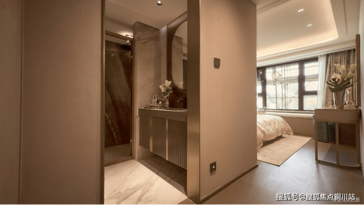 送给爱人的,不止窗外美景,更有品质生活的格调。奢阔主卧,为女主人留设专属衣帽间,靠墙的衣柜挂满服饰与包包;独立的卫浴,给爱人更好私密感和生活仪式感,在这里,空间会让爱意升温,更会把女主人宠成公主模样。