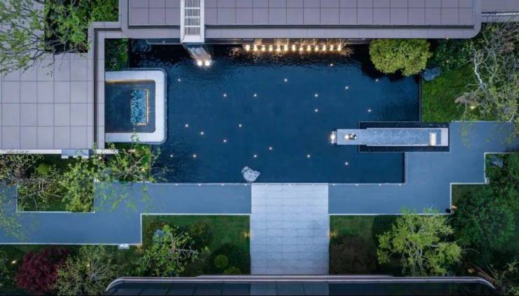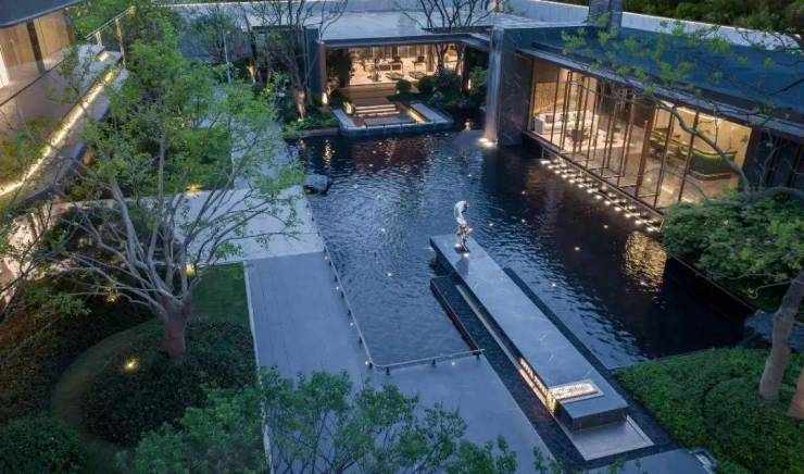 而源上九里更近一层,人在画里,每一处风景都露出“迷人的表情”。以南京芥子园为蓝本,东方雅奢,并做了相当夸张的“返璞归真”,极致化思路,让景观占据约2.6万方,占比超过80%。