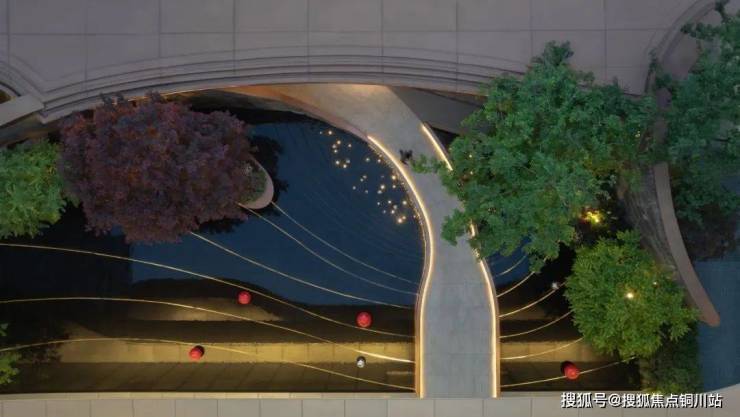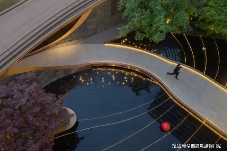 中庭的叠水浮桥,是自然与匠心的共舞。水光潋滟间,金属树池溢出的清泉叮咚作响,艺术小品点缀其中,宛如星河坠入人间。向心的叠水层层递进,聚水成财,光影与流水的缠绵,为空间注入一抹东方雅韵的灵动。