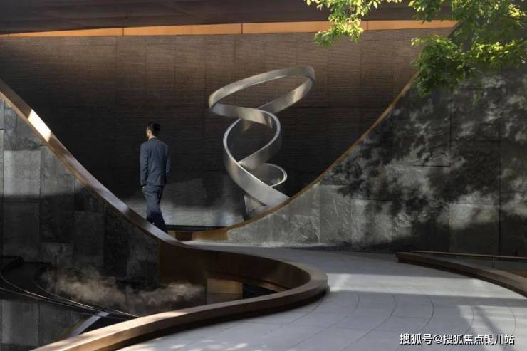 当波纹装置在超长界面上流转,光影与金属的碰撞如潮水轻吟,一场关于归家的仪式悄然开启。人车分流的静谧,精工石材的温润,艺术的波纹在夜色中泛起涟漪,仿佛天地初开时的一抹温柔,为每一位归者献上无声的礼遇。