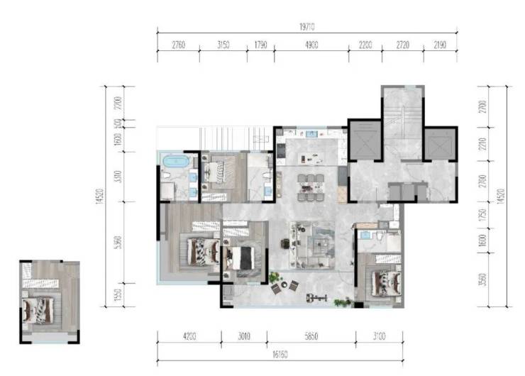 社区全小高层规划,主力户型都是155平-300㎡的改善产品,业主圈层相对更纯粹。部分户型通过精细化设计,综合得房率大部分都能达到95%以上,实现了空间效率的最大化。