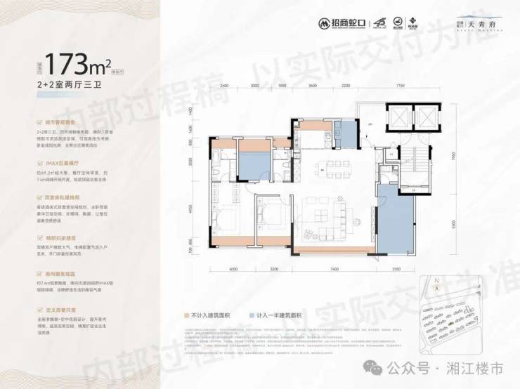 作为长沙罕见的「高赠送神户型」代表,天青府洋房/小高层得房率高层约90%、洋房/小高层超100%(部分户型含赠送面积)。