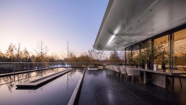 项目景观整体呈现自然开放、去围墙化的设计,将园区通过自然手法与城市形成若有若无的界限,达到公共景观与项目景观的融合与区隔,将项目融于江岸绿化景观之中。项目秉持空间即艺术、艺术即空间的景观设计理念,以武汉江城文化与云梦大泽作为自然基底 ,并以当代美术馆美学作为空间载体, 摒弃过分装饰化的设计手法进行景观打造,植物围绕“谧境”主题进行选型, 儿童活动区域与森系园林充分融合,以再现地域特色、再现生命特征、与饱满纯净平衡的美术馆美学为原则, 匠造“一殿一境三院落”立体森境,各区域呼应都会艺廊、云梦之屿、圣殿花园、云梦翠谷、云梦之汀等景观主题。
