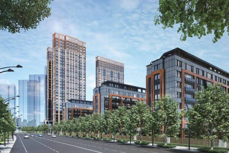 为了进一步提升质感,洋房建筑立面由大面积深色铝板提升为类幕墙玻璃,视觉上更通透灵动。