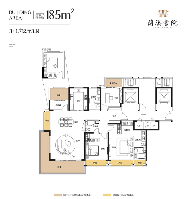 兰溪书院项目建设用地面积33826.33㎡,约合50亩,总建筑面积约137986.07,容积率2.99,绿地率30.01%,建筑密度22.2%,社区内共规划有10栋7-26层小高层及高层产品,规划总户数706户,机动车停车位792个。