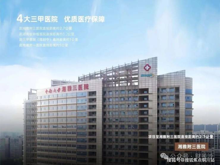 中南大学湘雅三医院、湖南省肿瘤医院、三甲医院(规划中)、中南大学湘雅一医院,呵护全家健康。