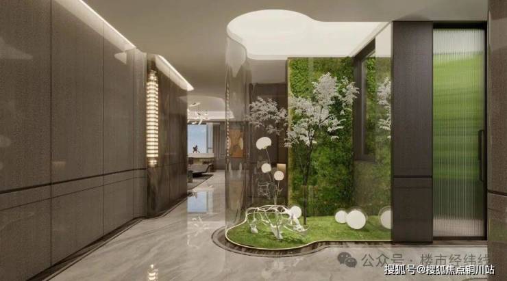 精心设计入户特色景观花庭,将花园景观搬到室内,让繁华都市生活变得柔软有温度。