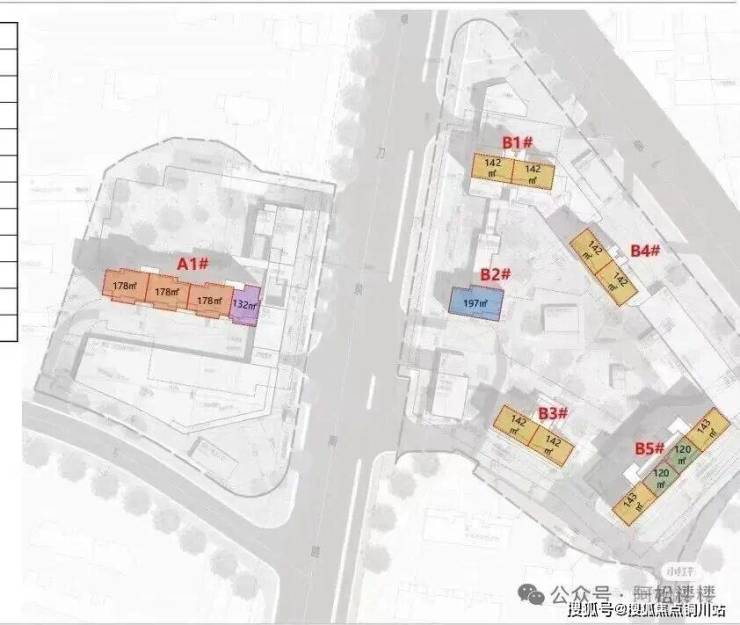 保利涧山观奕由A、B两个地块组成。B地块体量略大,主要由5栋住宅组成,位于卓刀泉南路的东侧。(备注:该项目对外销售时的楼栋编号与最初规划平面图楼栋编号不同,以下分析以对外销售的楼栋编号为准)。目前B地块5栋楼均已推出且售罄,带装修,预计2026年年底交付。