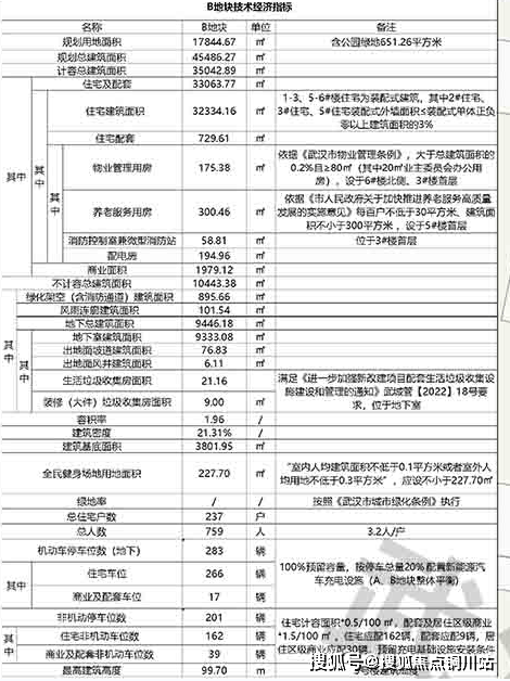 根据规划,B地块用地面积约1.8万方,总建面约4.5万方,住宅建面约3.2万方,容积率约1.96,总户数237户,住宅机动车停车位266个。B地块户均面积约136平,车位配比接近1:1。