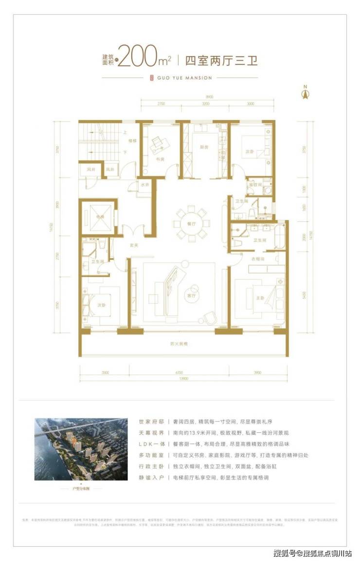 项目市场开放户型170—305平方米,整体方正通透,空间尺度宽阔,采光通风良好,动静分区明晰,客、餐厅相连,形成宽敞的公共活动空间;卧室分布合理,保障私密性;多卫设计满足大家庭需求,部分户型设置独立书房、家政间,满足多样化居住需求。