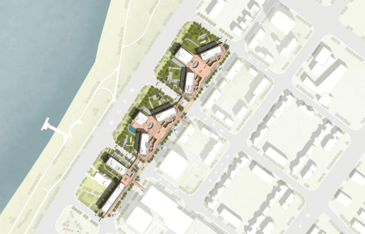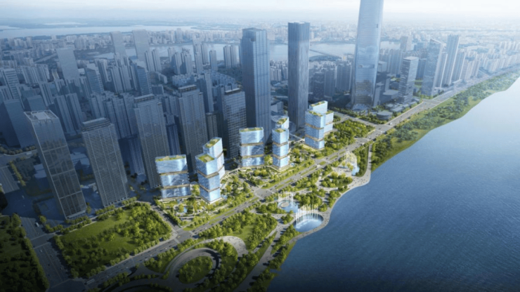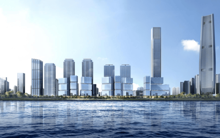 采用国际竞赛方式落地规划方案,邀请国际知名设计机构参与概念方案比选。立面设计元素源自宋代马远的十二水图,将水图中长江万顷的绘画笔触,提炼为建筑造型语汇,将当代国际化的建筑风格与武汉本土的长江水文化结合,构成具有识别度的城市建筑形象。
