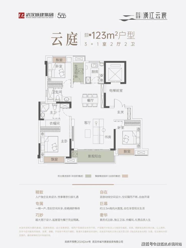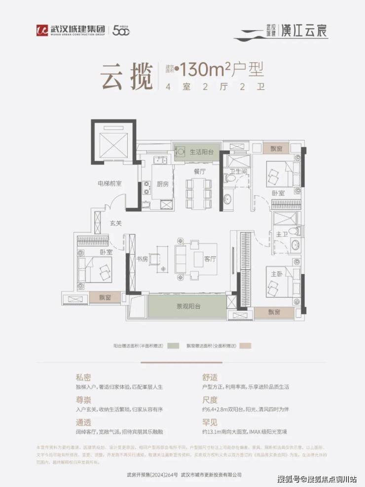 其次,实得面积才是硬通货。武汉城建・汉江云宸一梯一户设计,独立电梯厅全赠送+飘窗全赠送+阳台半赠送,整体实得面积完全可以媲美四代住宅。