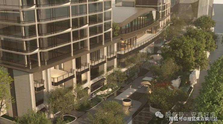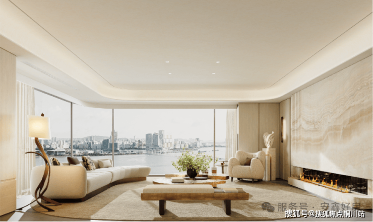 项目首层抬板设计,利用地库整体抬升约2.7米,形成场地高差,创造出4层观江会所与3层架空花园的独特空间效果,以超前手法重构“一楼一岛景、浮岛花园”的独特居住体验。