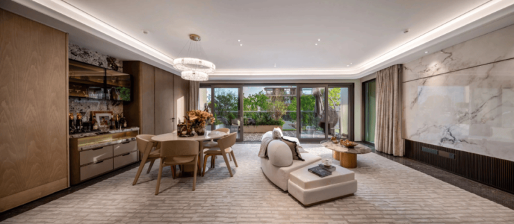 从主入口约 40 米奢阔门庭的仪式感,到下沉式会所的整体营造;从彰显品味的红酒雪茄吧与私宴厅,到场景丰富的恒温室内泳池、儿童区、健身房及棋牌室 ...... 每一个空间,都以奢华酒店标准精心打磨。