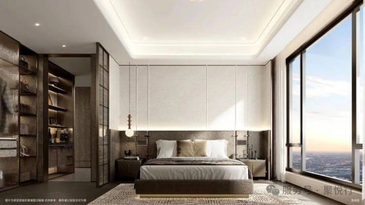 客餐厅270度全景仓设计,三面采光。卧室全朝南,全落地双层真空low-e玻璃,最大化视野和采光的同时,有效降低您的紫外线危害,以及大幅减少噪音影响。