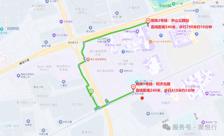 约100m至武汉K11/约300m至武汉国际广场/约400m至恒隆广场