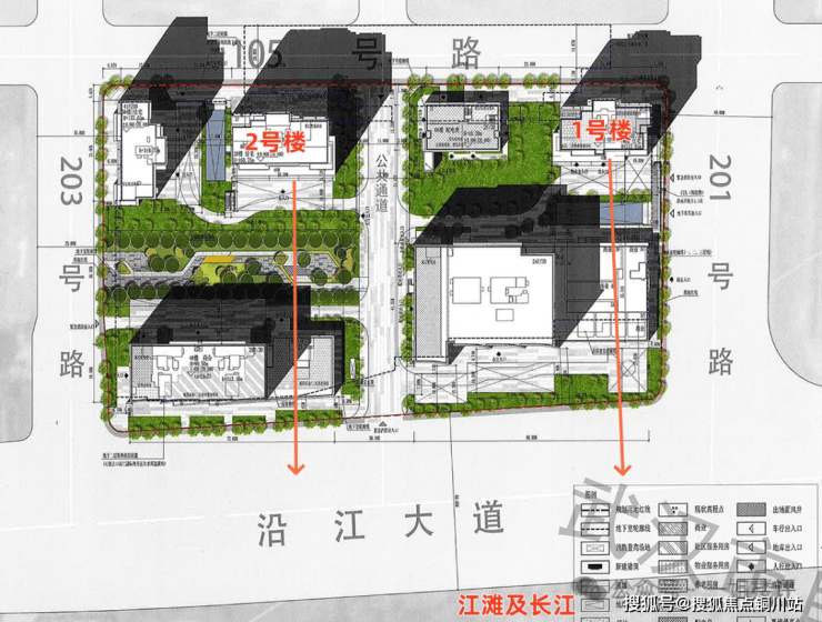 从平面图来看,1号楼是西南朝向,且与前面的商办楼错开分布,因此可以直面长江,有很好的观江视野。而且1号楼是纯板楼结构,所有房源的通透性都很好。