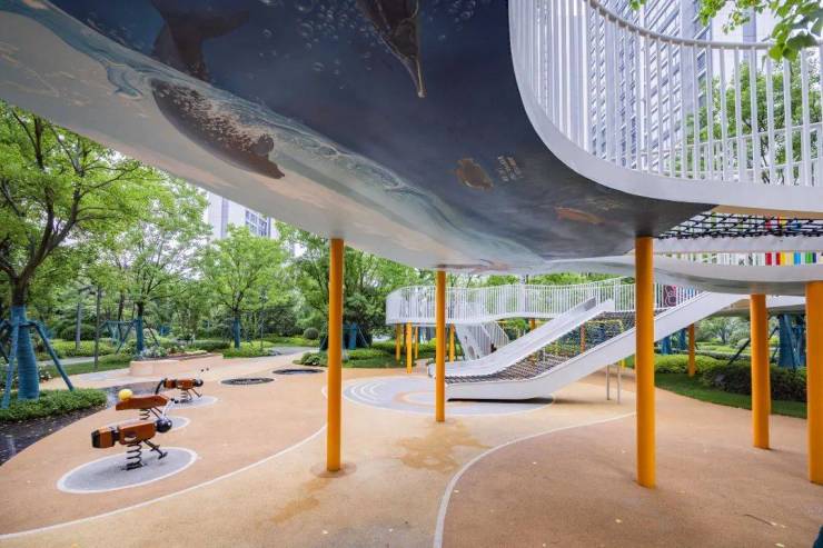 注意看,就连滑梯的颜色,江心印园都做成了更好看的渐变色!好一个审美大师,名不虚传!