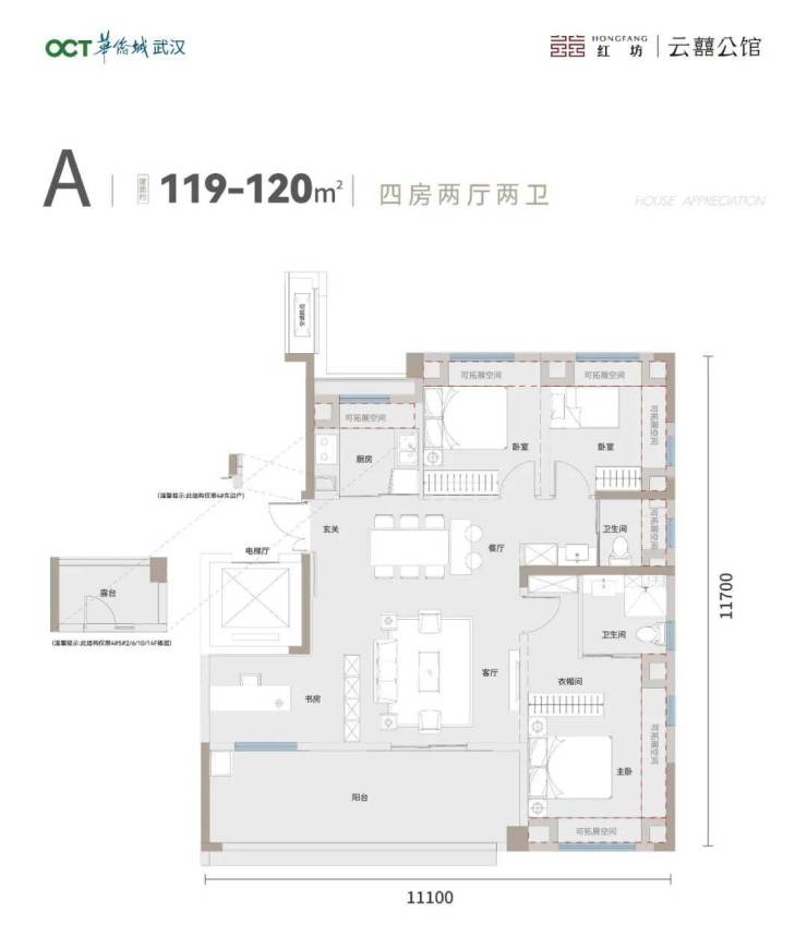 项目首开预计会放出建面约120㎡四房两厅两卫产品