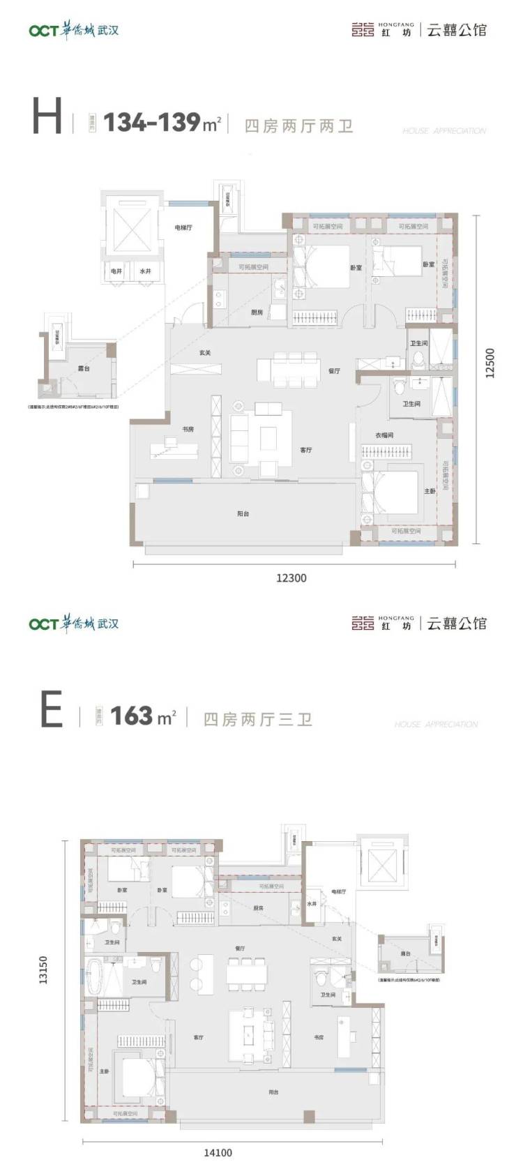 项目首开预计还有建面约134㎡、约163㎡的纯粹改善四房