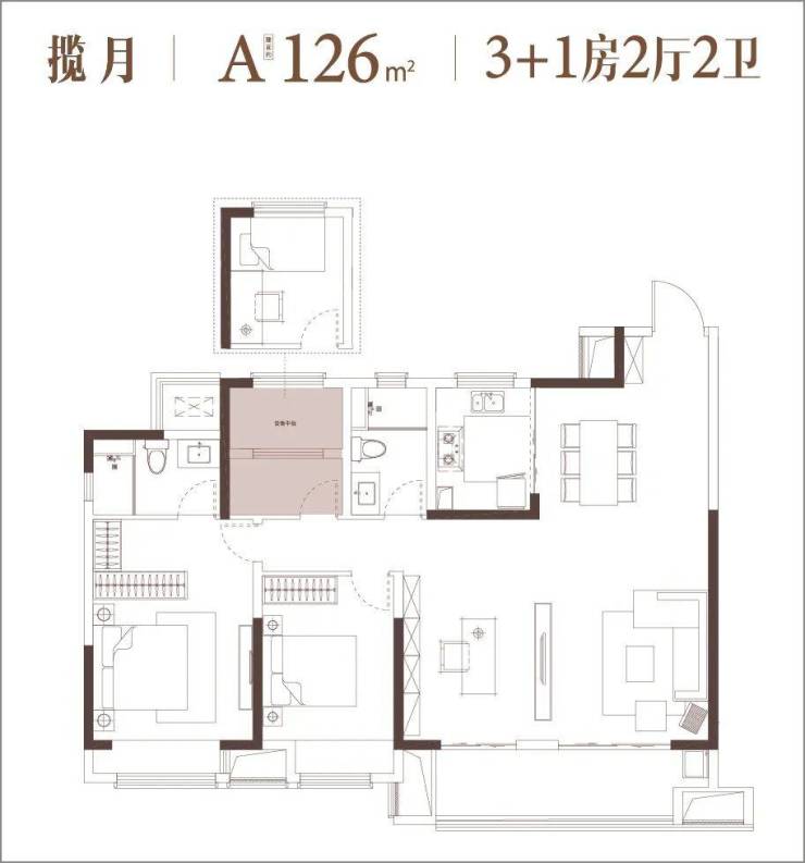 建面约126㎡3+1房2厅2卫户型,则是全功能360°无改善死角户型。