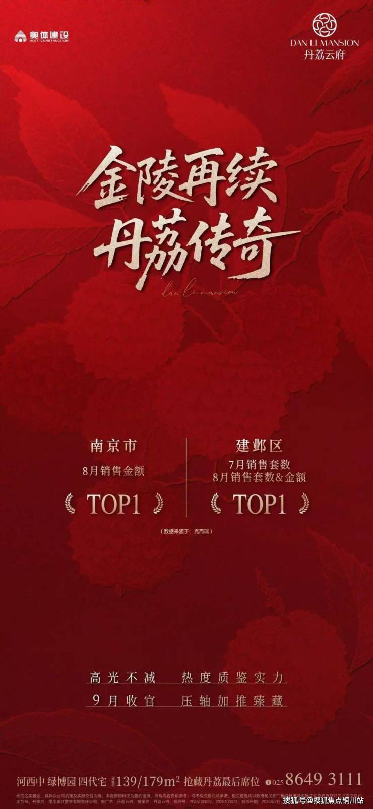 8月南京楼市榜单重磅出炉!奥体建设·丹荔云府以强劲表现一举斩获「全市成交金额第一」、「建邺区套数、金额双第一」的辉煌战绩!