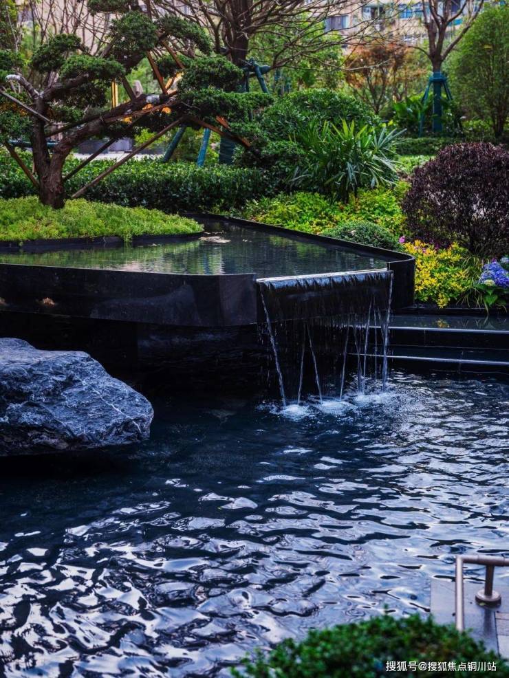 据悉项目不仅升级了水景(水景是豪宅的重要指标之一,不仅好看、寓意也好,但后期维护成本高,现在很多楼盘的水景都越来越少了),还全冠移植了绿植,优化景观效果。