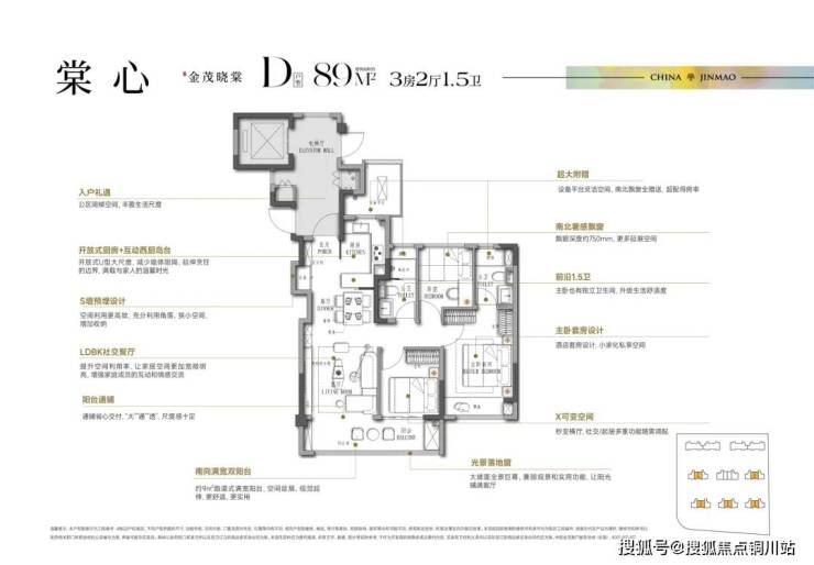 以建面约89㎡户型为例,对尺度的开发基本做到了极致。