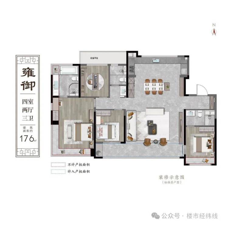 外立面采用三段式设计,从飞檐到立面线条,搭配中式纹路的点缀,尽显沉稳大气;北门入户大堂规划“无雨落客区”,为业主提供打车出行的酒店式落客归家体验;同时采用地上及地下双精装入户大堂设计,礼遇每次归家之旅;地下车库采用环氧地坪漆材质,呵护尊驾,礼制归家。