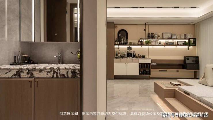 从进门开始,到电视机墙旁边的日咖夜酒吧台,都被设计成了储物空间。