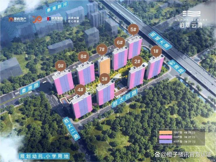 在售面积:95㎡、110㎡(三房两厅两卫)、135㎡(四房两厅两卫)