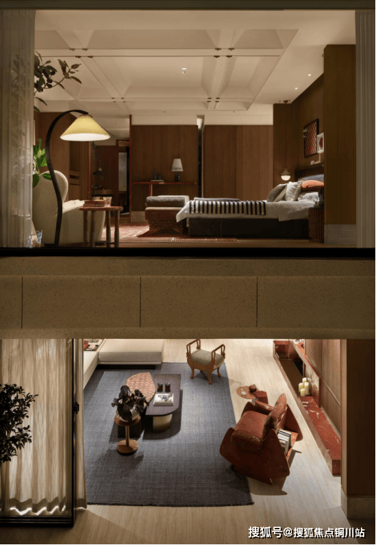 自然韵律的材质色彩:选用原木、天然奢石、洞石等自然材质,搭配米白、焰红等色彩,勾勒出四季更迭的自然韵律,为空间赋予诗意与活力。