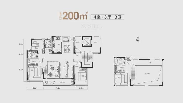 【200㎡三室三厅两卫】
