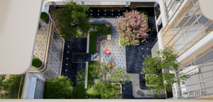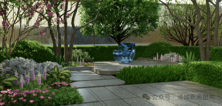 ⑤立体景观体系,一楼带奢侈庭院空间,可布置阳光草坪、休闲平台、景观水系等功能区;