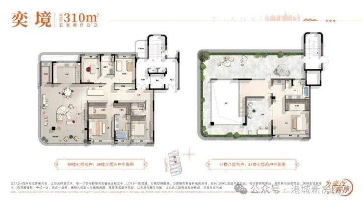 建面约310㎡, 5室2厅4卫