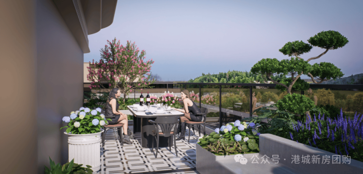 顶复赠送超百平方米的观景露台,三面超广角,无遮挡观云、观星、观城,将一楼的庭院空间搬至空中,寻一方庭院,度一场清欢。