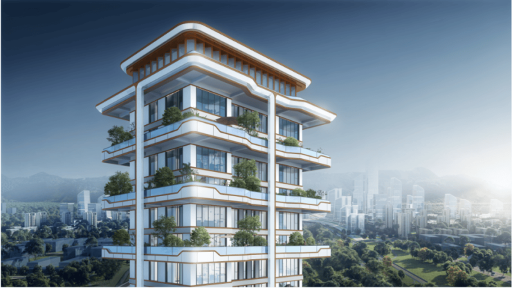 大师立面设计:其外立面采用深灰色铝板、银灰色一体板、LOW-E 玻璃、米白色一体板等高品质材料,窗墙比大,屋顶呈飞翼造型,转角有着如同 iPhone 般的精密弧度,彰显了建筑的现代美学14