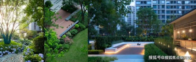 进入社区,内部景观度假酒店式生活场景,以溪水、森音等自然元素为灵感,营造两轴六园,兼具私密感和尊崇感。