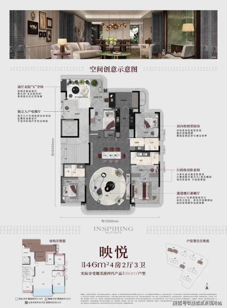 而建面约146㎡户型则更为惊艳,汲取了四代宅的花园基因、大平层的开阔尺度与别墅的私密感,在四代宅时代极具竞争力。