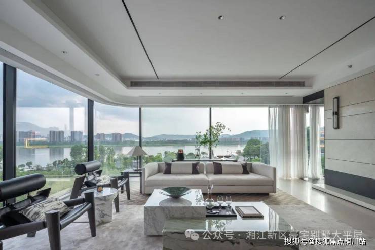 绿城作为城市天际线颜值规划师,肩负打造城市建筑审美的责任, “超平面”美学体验,大面积玻璃幕墙,弧线形柔性转角,让建筑轻盈灵动,消隐于湘江天地之间