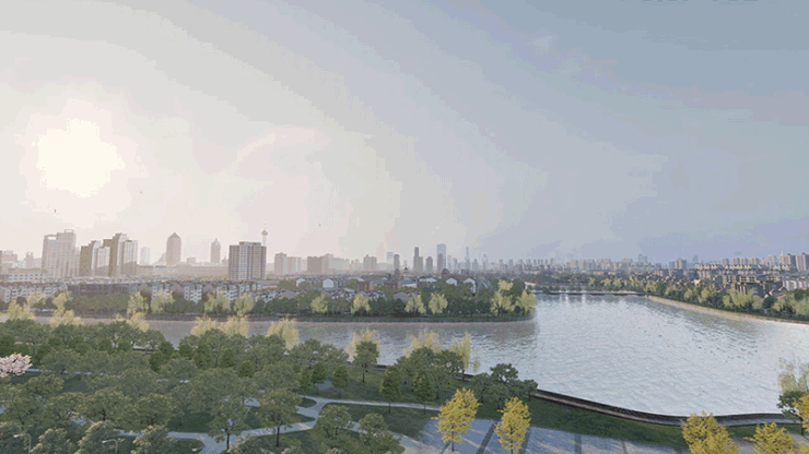 取意《千里江山图》的山水哲学与南通濠河千年文脉,以“一环两轴五景”景观规划,匠造可游、可赏、可栖的沉浸式东方园林体系,重现宋人“不下堂筵,坐穷泉壑”的理想栖居意境。