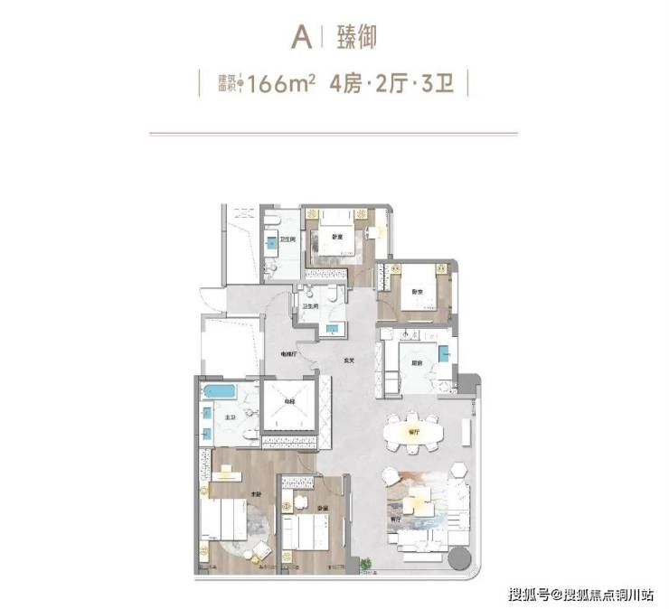 奢华主卧套+舒适套间,大空间尺度,让居住生活更舒畅和更具私密性。