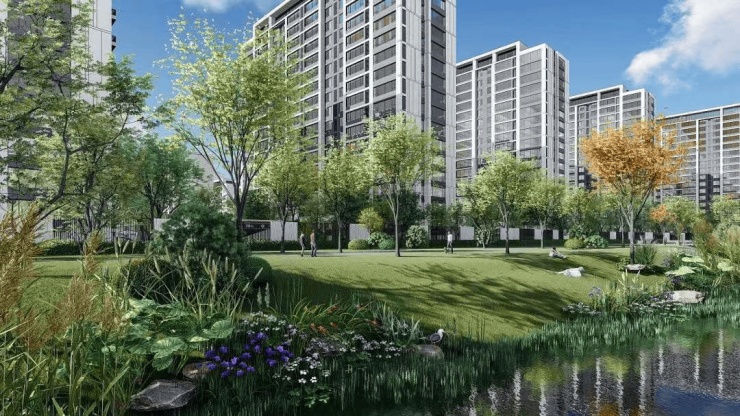 下楼即是项目的主要景观组团——樱花大道。花季之时,繁花似锦,蝶粉蜂黄,羊脂白雪半面妆。不用去日本也不用去武大,在自家门前就能成功打卡。