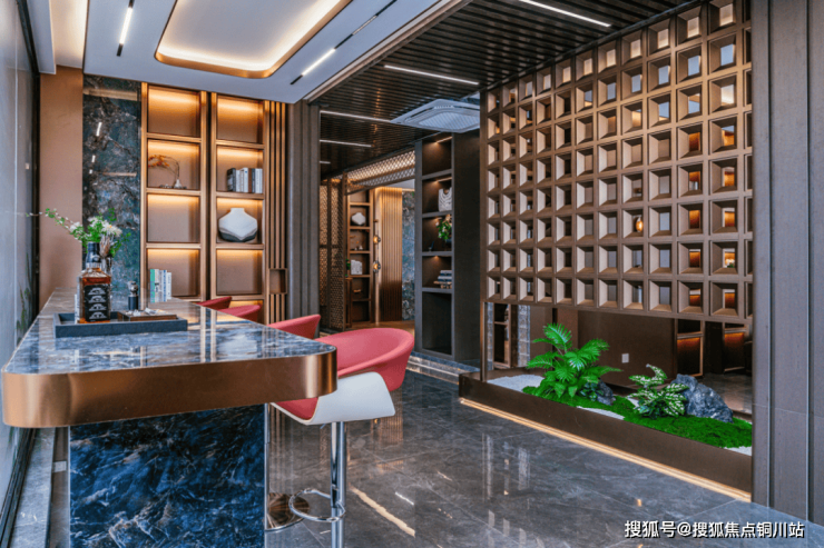 设计师专门利用蓝钻大理石拼接成珠宝级镜面,当小区的雾森系统启动时,38块异形石材在水汽中折射出莫奈画般的朦胧。