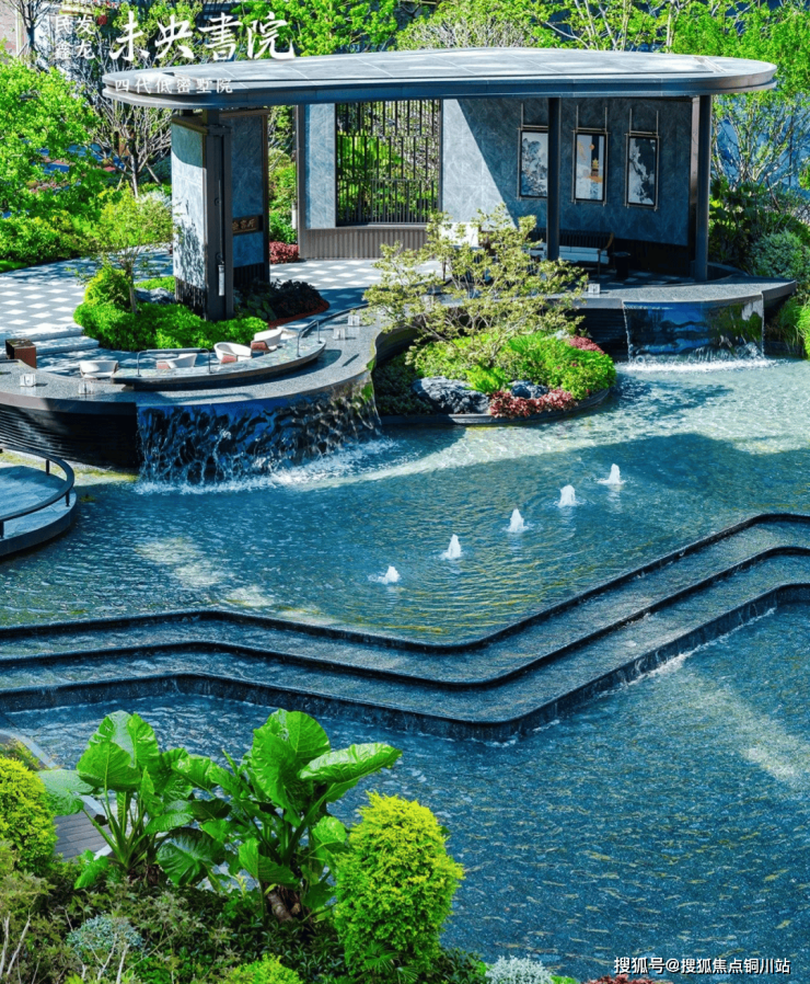 穿过森系步道,水幕吧台的流光打破静谧 —— 这是第四代建筑对水景的颠覆性表达。