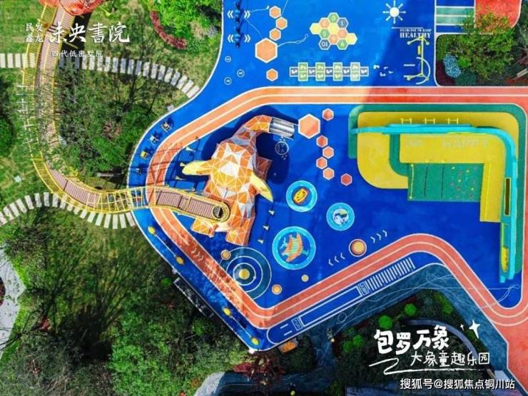 未央書院大象童趣乐园占地2000平方米,包含了阳光草坪、蝴蝶谷沙池、塑胶场地,其中大象造型长8.5m,高3.6m。这空间,说它是小区里藏着的“迷你欢乐谷”一点不夸张!