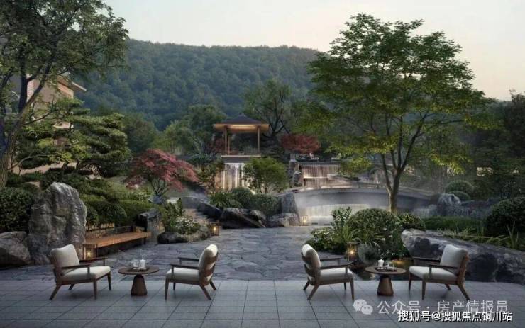 社区依临平山脉走势,整体北高南低。景观结合宋画中的山石、花木等元素,融入传统坊巷理念,抬地地形营造出淡然内敛的游园体验。