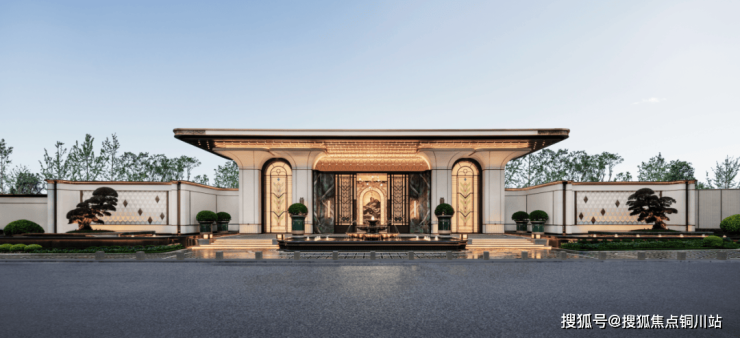 99米艺术殿堂级门廊+五重歇山皇家屋顶,穹顶又融入宝格丽酒店元素,门口两棵80年的古松......可能是武汉甚至华中级别的顶配
